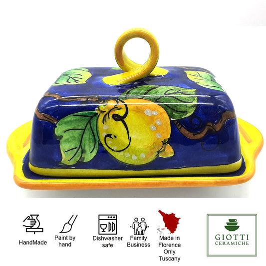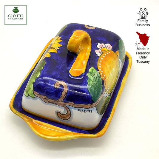 Monteriggioni Blue Sunflower Lemon and Orange Butter Dish