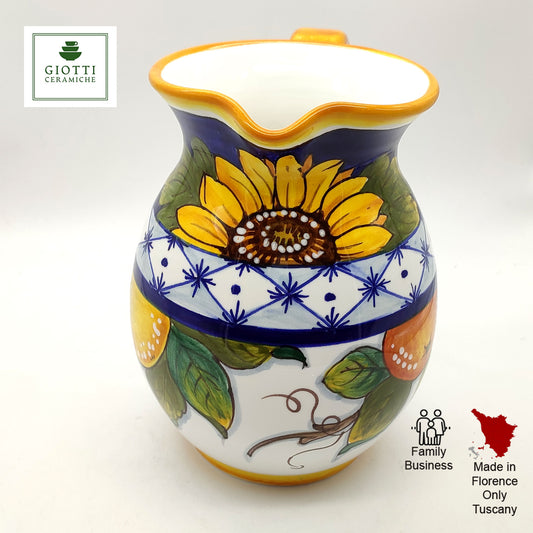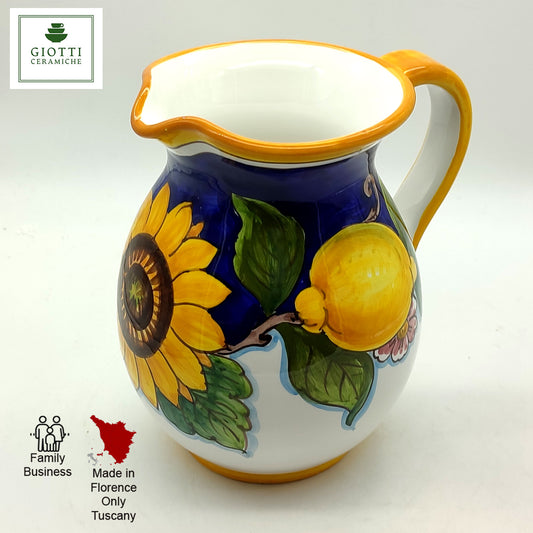 Monteriggioni Blue Sunflower Lemon and Orange Wine Jug 1 liter