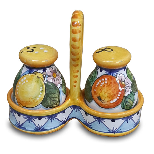 Monteriggioni Blue Sunflower Lemon and Orange Salt and Pepper shakers