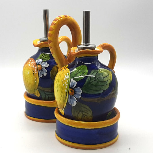 Lemon Blue Hand-Painted Oil & Vinegar Cruet Set