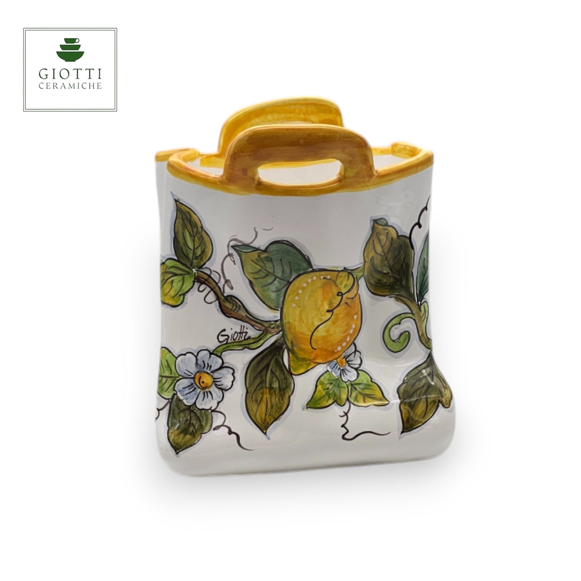 These flower or mail vases in ceramic are hand-painted in Italy, It serves as both a decorative ceramic as well as a functional kitchen accessory making it a great gift for any home. Can be coordinated with mug, bowls, plates, spoon rest, entire set, pitcher, caraff, salad plate, platters, tiles, grinder.