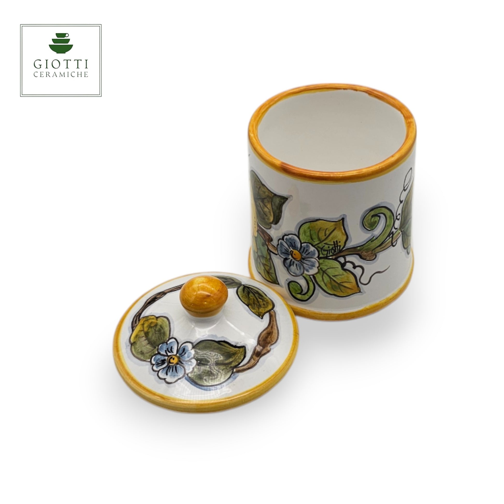 - Bring a touch of Italian artistry into your home with this hand-painted ceramic jar, featuring an elegant Lemons design. Crafted with care in the heart of Florence, Italy, this jar reflects the beauty and tradition of Italian craftsmanship. Each piece is individually painted by hand, making it a unique work of art. Perfect for storing coffee, sugar, spices, or even as a decorative accent on your shelf or table. Its vibrant colors and detailed design will brighten up any room, making it a perfect gift or addition to your own collection.
